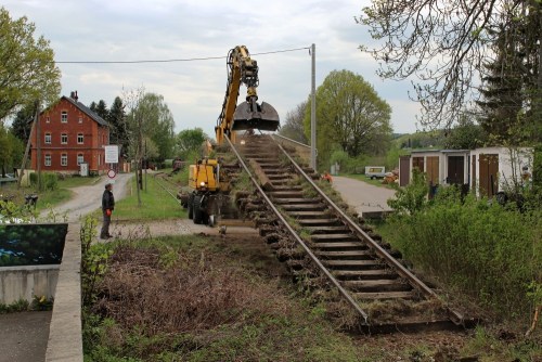 Eine letzte Renaissance erlebte die Strecke zwischen Sommer 1997 und Mai 2000, als Kohle-, Kalk-, Gips- und Aschezüge für das Heizkraftwerk Chemnitz-Nord II mehrmals täglich verkehrten. Grund für die mehrjährige Umleitung waren Achslastherabsenkungen bei Brückenbauwerken auf der Strecke Chemnitz – Borna (– Leipzig). Die nochmals hohe Streckenauslastung in Verbindung mit einigen unbeschrankten Wegübergängen und folgerichtigem Signalton der Lokführer führte zu zahlreichen Anwohnerprotesten in Grüna und Rabenstein. Vielen, die ihr Eigenheim jüngst neben dem Gleis platziert haben, hatte man wohl eine „tote Bahn“ versprochen. Entsprechend groß war der Verdruss. Zu einer erneuten Streckennutzung kam es nach 2000 nicht mehr. Vielmehr genehmigte das Eisenbahn-Bundesamt zum 29. Juni 2004 die Stilllegung der Bahnstrecke, welche am 30. September desselben Jahres wirksam wurde. Um einen vier Meter breiten Radweg auf der Bahntrasse zu errichten, kaufte die Stadt Chemnitz die Bahngrundstücke und ließ die Gleise bis Mitte 2020 abreißen. (Ein Beitrag dazu ist Im Ortschaftsanzeiger 05/2020 zu lesen.) Bis der Radweg in Grüna fertig sein wird, vergehen noch Jahre. Aktuell arbeitet man an den ersten beiden Bauabschnitten zwischen Chemnitz-Altendorf und Rabenstein.