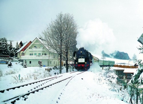 Anlässlich des 100-jährigen Jubiläums unserer Bahnlinie pendelten am 6. und 7. Dezember 1997 mehrmals dampflokbespannte Reisezüge zwischen Chemnitz und Wüstenbrand. Zum Einsatz kam dabei 50 3648 des Sächsischen Eisenbahnmuseums Chemnitz-Hilbersdorf. Im oberen Bahnhof von Grüna konnte die Kleindiesellok der Lugauer Eisenbahnfreunde auf dem Nebengleis für Führerstandsmitfahrten genutzt werden. Immerhin letzteres ist 25 Jahre später – Familie Köstner sei Dank – wiederholbar. Von einem dampflokgeführten Sonderzug mit wunderbaren Grünaer und Rabensteiner Aussichten auf die Winterlandschaft konnte man anno 2022 jedoch nur noch träumen.