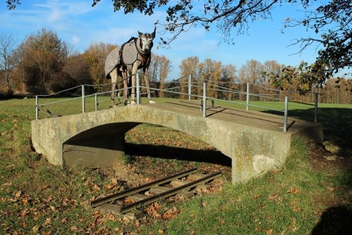 Wie man am Geländer sieht, ist das Kleinod sehr oft menschlichen Idioten ausgesetzt. Der Holzesel ist aktuell nicht vorhanden. Die Originalbrücke wurde schon zu tiefsten DDR-Zeiten abgebrochen, der Einschnitt mit Müll und Aushub des Stausees verfüllt.