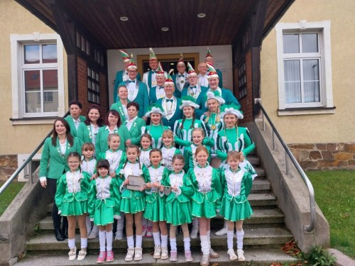 Ach so – eine gute Eselsbrücke zum 11.11... Da war ja Schlüsselübergabe im Chemnitzer Rathaus. Und während sich dort die letzten 3 Vereine präsentierten, hieß es erneut am Grünaer Rathaus: „ wie immer“. Der Unterschied von beiden Übergaben – der Grünaer Faschingsclub nahm die Reise auf sich, um noch den Kindergarten und die Grundschule zu besuchen und mit Tänzen zu verzücken.