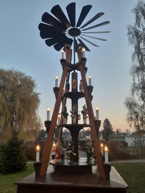 Manch ein Ort hat keine Pyramide – in Grüna und Mittelbach gibt es deren gleich vier (nicht gezählt die vielen kleineren in den Vorgärten, von denen einige doch eine stattliche Größe haben und vor denen man gern bei den Spaziergängen in der Adventszeit und danach stehen bleibt).