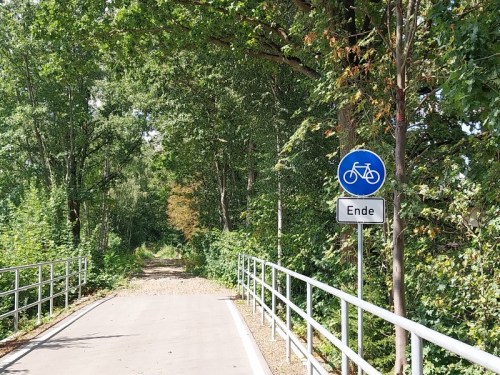 Und schließlich entsteht ein Weg, der für Fußgänger nicht erlaubt ist. Man kann nur hoffen (auch zukünftig für die Ortslage Grüna), dass das Ordnungsamt bei Fußgängern ein Auge zudrückt (Ist man, wenn man das Fahrrad schiebt, eigentlich Fußgänger und muss den Weg umgehend verlassen?)
