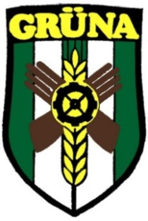 Das abgebildete Grünaer Orts“wappen“ entstand erst in den 1980er Jahren. Dem alten Ortssiegel mit Ähren und Handschuhen wurden die Sachsen-Farben hinzugefügt sowie ein Zahnrad als Symbol für die Metallindustrie.