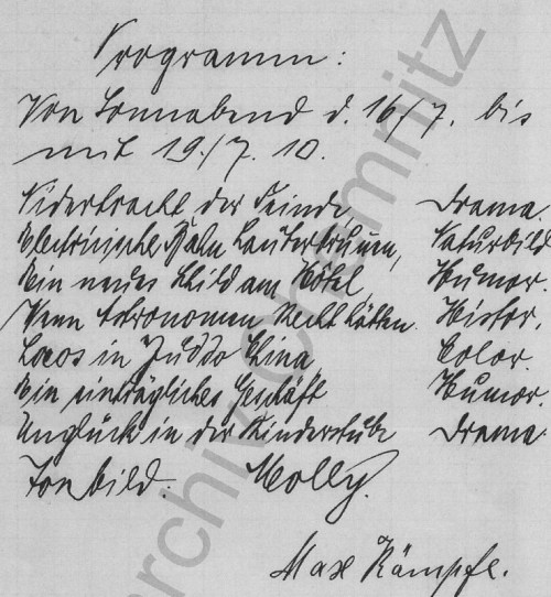 Von Kämpfe handgeschriebenes Filmprogramm, 1910 (C0127/S246 , Bl. 14)