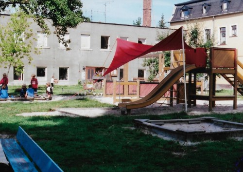 Außer dem Einbau der neuen Heizung und dem Umbau des Gebäudes hatte man den gesamten Spielgarten bzw. die Spielwiese neugestaltet.