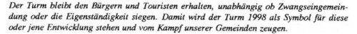 Heute ist in Grüna überall zu sehen, was in diesen bewegten „90ern“ im Ort geschaffen wurde. Im wahrsten Sinne herausragendes Symbol ist unser Aussichtsturm auf dem Totenstein. Gerhard Traetz schrieb dazu im Gemeindeblatt Oktober 1997: