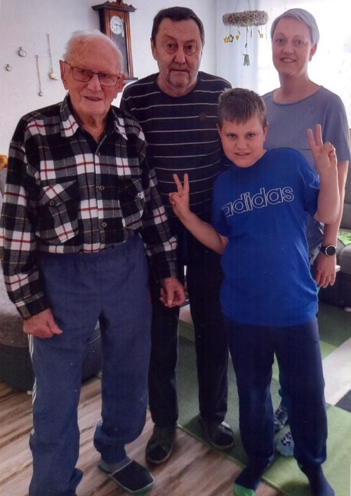 Gerhart mit Sohn, Schwiegertochter und Enkel