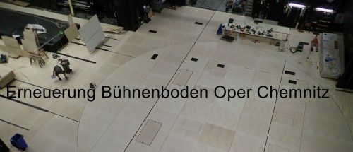 Erneuerung von Bühnenböden im Opernhaus, im Schauspielhaus, in der Probebühne Chemnitz und aktuell in der geplanten Ausweichbühne im ehem. Spinnereimaschinenbau Karl-Marx-Stadt/ Chemnitz.
