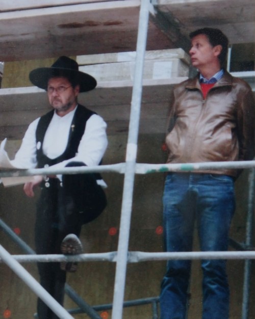 Einer der Potsdamer Auftraggeber war Günther Jauch, der mehrere Häuser in Potsdam gekauft hat, sanieren ließ und lässt, vermietet und damit einen Beitrag zur Verschönerung Potsdams leistet. Die Zimmerei Nitzsche war mit Dachstuhlsanierungen dabei. Das Bild entstand bei einem Richtfest, bei dem sich Herr Jauch als Kandidat von „Wer wird Millionär“ mit Fragen wie „Wie viele Quadratmeter Dachschalung wurden verlegt: A … m2, B … m2, C … m2, D … m2?“ bewähren musste (Telefon-Joker etc. waren natürlich zugelassen).