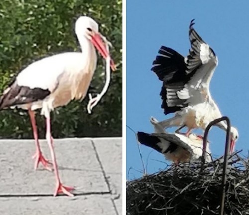 Aber bevor wir zu weit abweichen: Eifrig wurde also am Nest gewerkelt, und wenig später konnten die beiden bei der Paarung beobachtet werden, was Hoffnungen auf Nachwuchs schürte. Kurz darauf begann die Brut und tatsächlich wurden am 1. Juni die ersten beiden Küken im Nest entdeckt! Ihnen folgte wenig später ein Geschwisterchen.