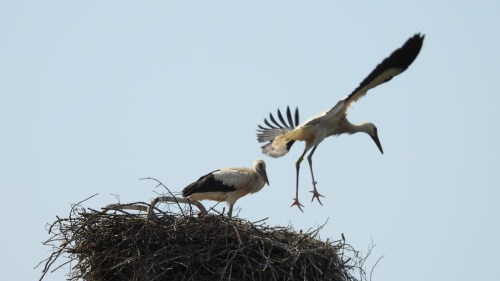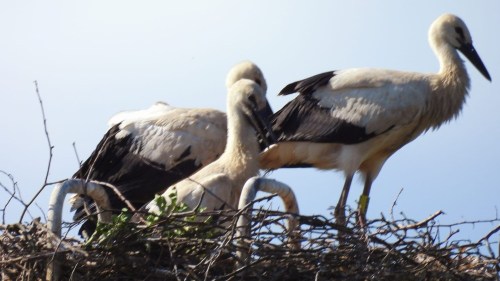 Einige Male gab es auch dieses Jahr wieder „Besuch“ von mehreren anderen Störchen, die in unmittelbarer Nähe gesichtet wurden. Zum Glück gab es bisher aber keine größeren Kämpfe.