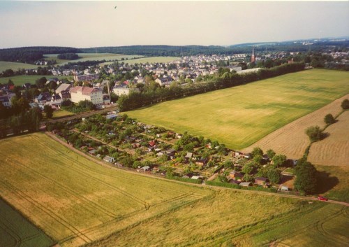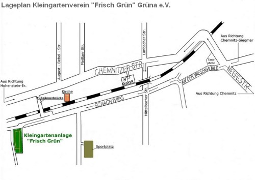 Den Kleingartenverein „Frisch Grün“ erreicht man über den Schachtweg in Grüna.
